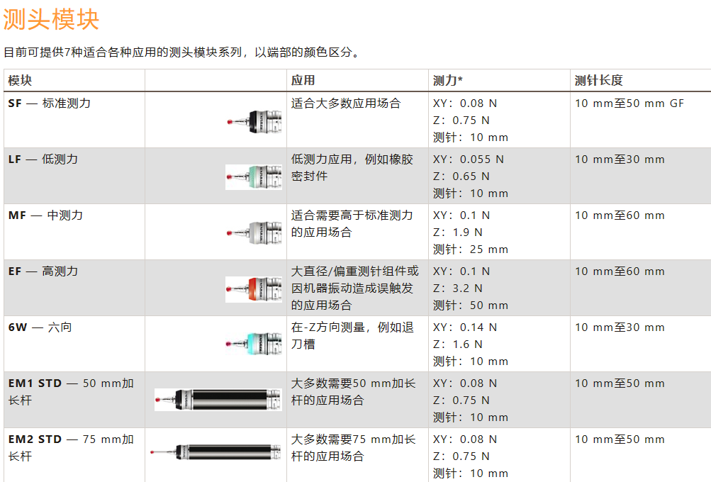 A-1371-0270标准力探头模块可与以下测针系列一起使用:
