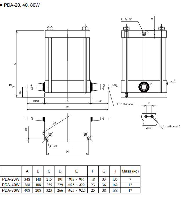 日本IWAKI磁力泵PDA-20W  PDA-40W  PDA-80W 尺寸: